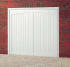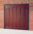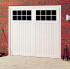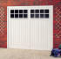 Vertically opening garage doors with horizontal steel ribbed or Georgian panelled designs.
