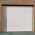 Vertically opening garage doors with horizontal steel ribbed designs.