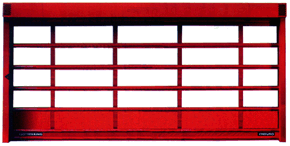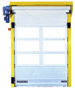 Frigo Flexible motorised fold-up or roll-up traffic door. Opening speed from 0.8 to 1.2 meters per second. Single, double or triple skin depending on the difference of temperature between interior and exterior. Speeds up the fall in temperature, retains the low temperature during traffic flow and reduces energy consumption and improves the working environment. Sizes up to 4m x 4m. |